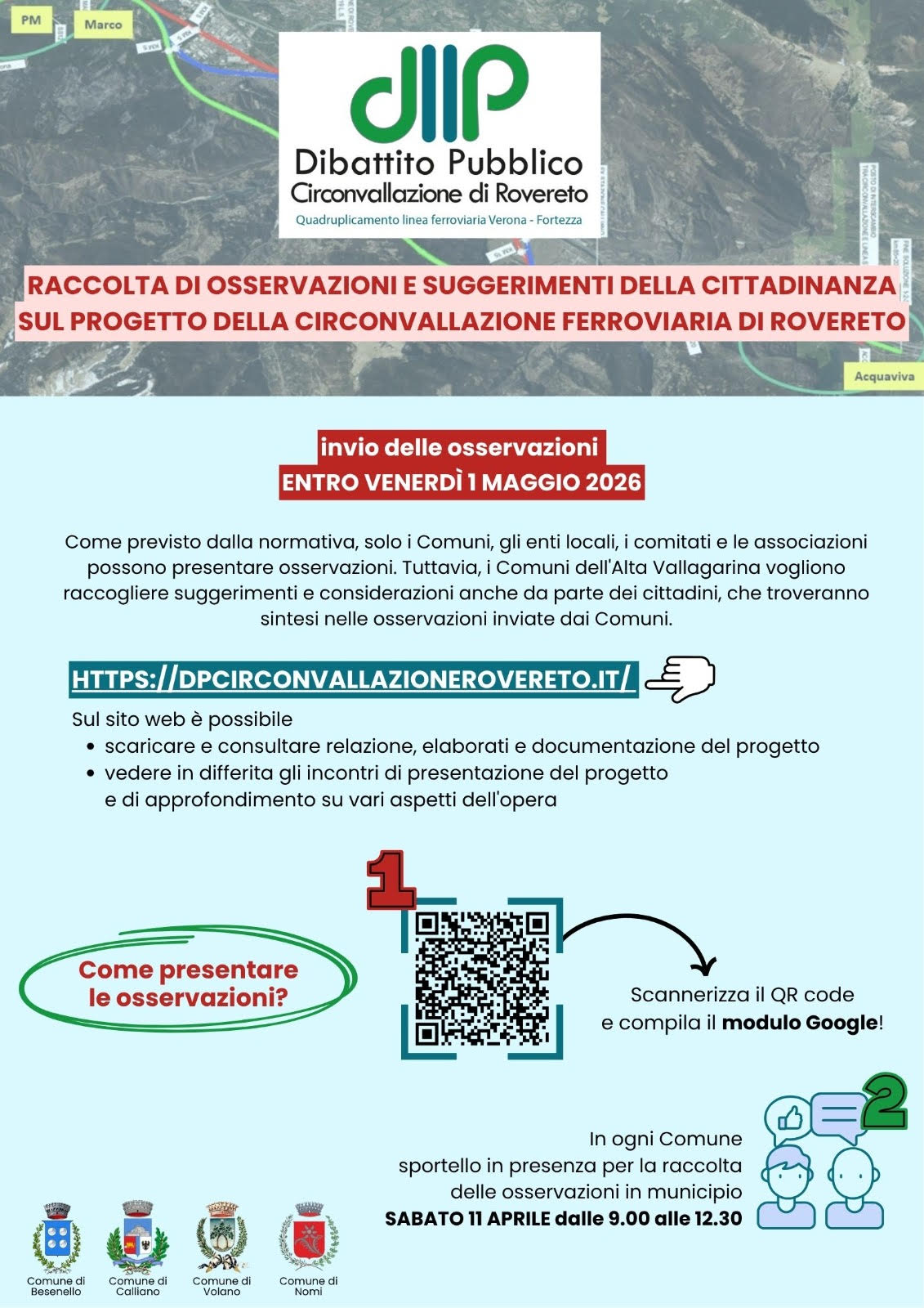 In collaborazione con gli altri Comuni dell’Alta Vallagarina è stata attivata una raccolta di suggerimenti e osservazioni che saranno valutati ai fini della predisposizione delle osservazioni ufficiali dei Comuni nell’ambito del Dibattito Pubblico.